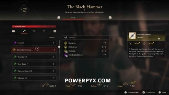 注意事项:不要出售制作众神陨落的必备材料,否则在本周目中将无法获得此武器。但可以在新游戏+中再次收集足够的素材后制作。
