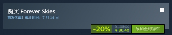 永恒天空在steam上的售价为108元,目前首发优惠仅需86.4元,首发优惠截止时间为7月14日。游戏支持简体中文。